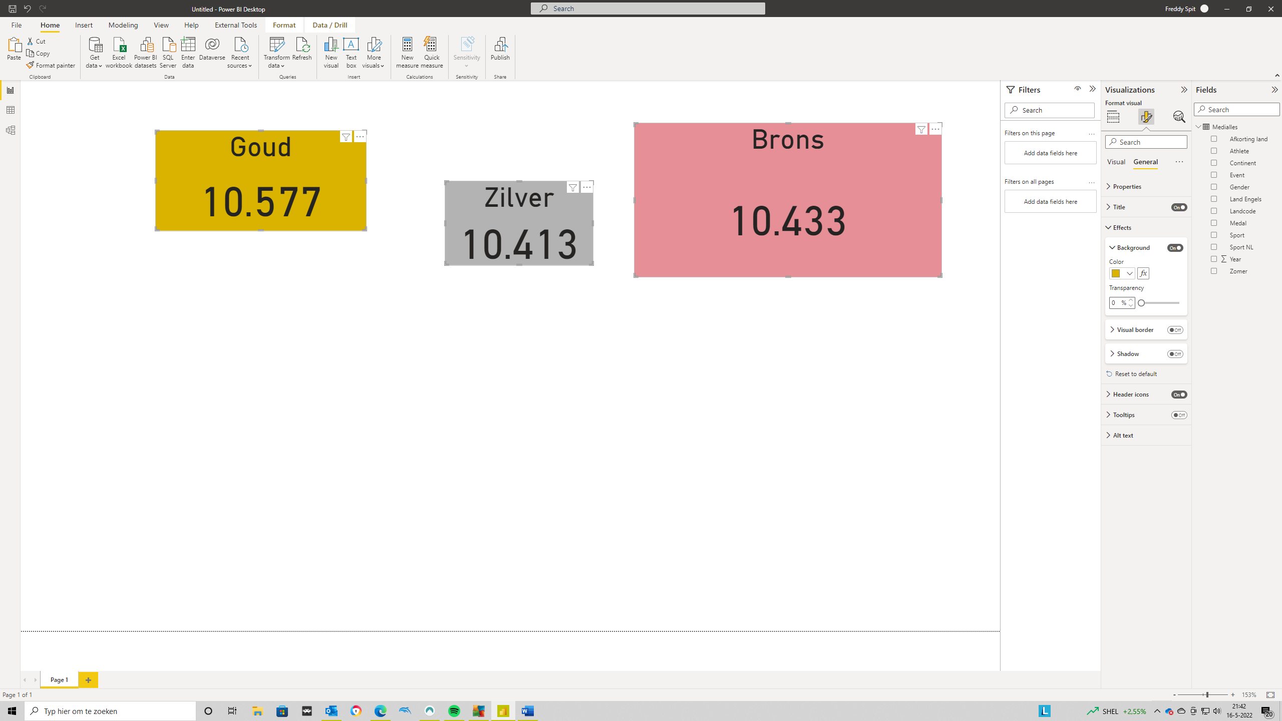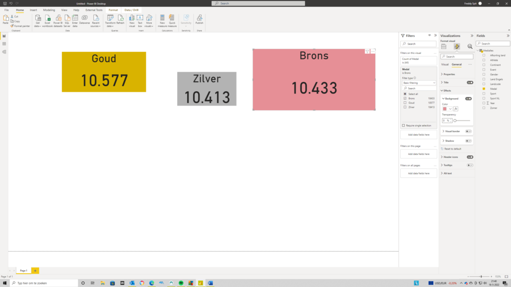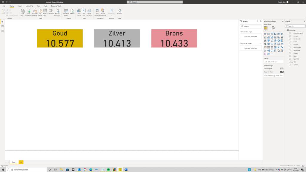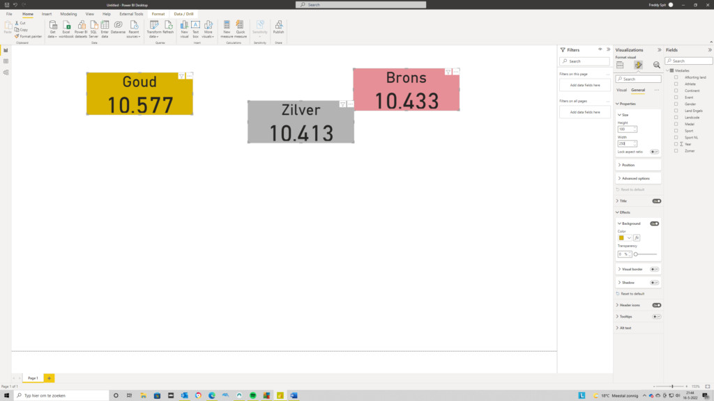 - Na deze aanpassingen zien de visuals er nu alle drie hetzelfde uit. Waardoor het rapport rustiger oogt en prettig leesbaar is.