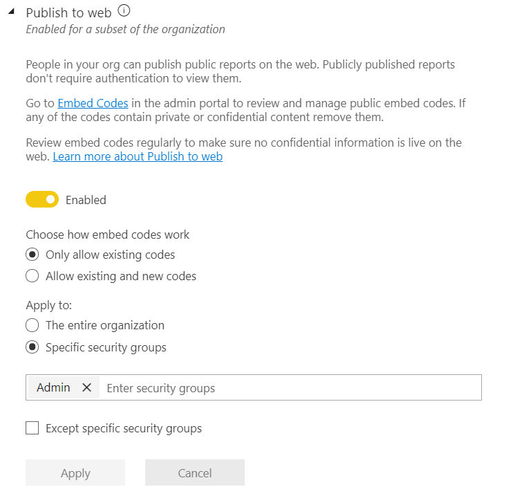 Met de optie ‘Publish to web’ wordt je rapport dus zichtbaar voor iedereen. En is het zelfs via Google te vinden. Helaas is dit nog steeds niet voor iedere gebruiker duidelijk. Een datalek, met alle gevolgen van dien, is dan dus een reëel risico. Daarom adviseren wij Power BI administrators altijd deze optie via de Power BI Admin Portal te blokkeren.