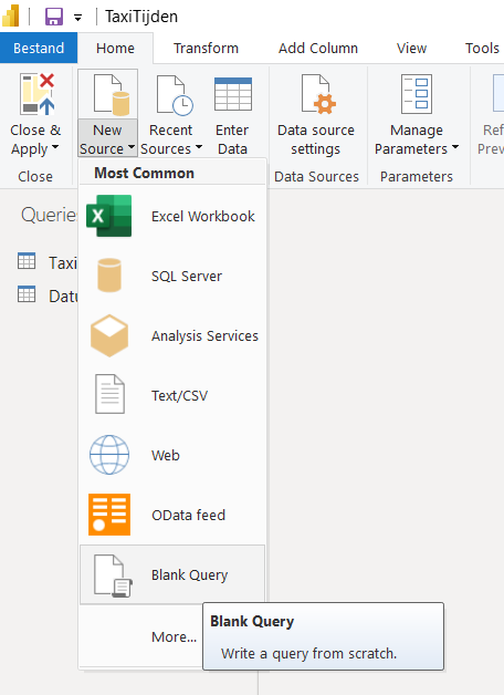 1. Open Power Query en maak een nieuwe lege query.