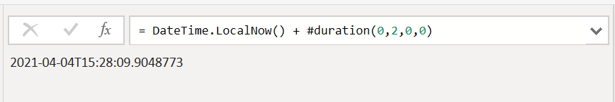 Deze functie geeft een Datumtijd waarde inclusief de tijdzone. Die zone is niet nodig dus gebruik ik ook de functie DateTimeZone.RemoveZone, die de zone verwijderd: