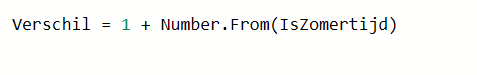 De uitkomst van stap 4 is een boolean, deze geeft True als de UTC in de zomertijd valt, en False als dat niet zo is. Het mooie hieraan is dat True ook als het getal 1 kan worden weergeven. Terwijl False gelijk is aan 0. Dit doe je met de functie Number.From