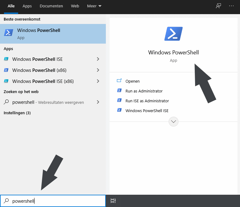 De eenvoudigste manier om PowerShell te vinden is om gebruik te maken van de Windows zoekbalk: