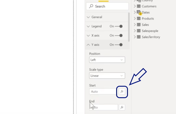 Hierdoor kan het begin en eindpunt van de X- en Y-as as worden bepaald door een ‘fx’ (een functie).